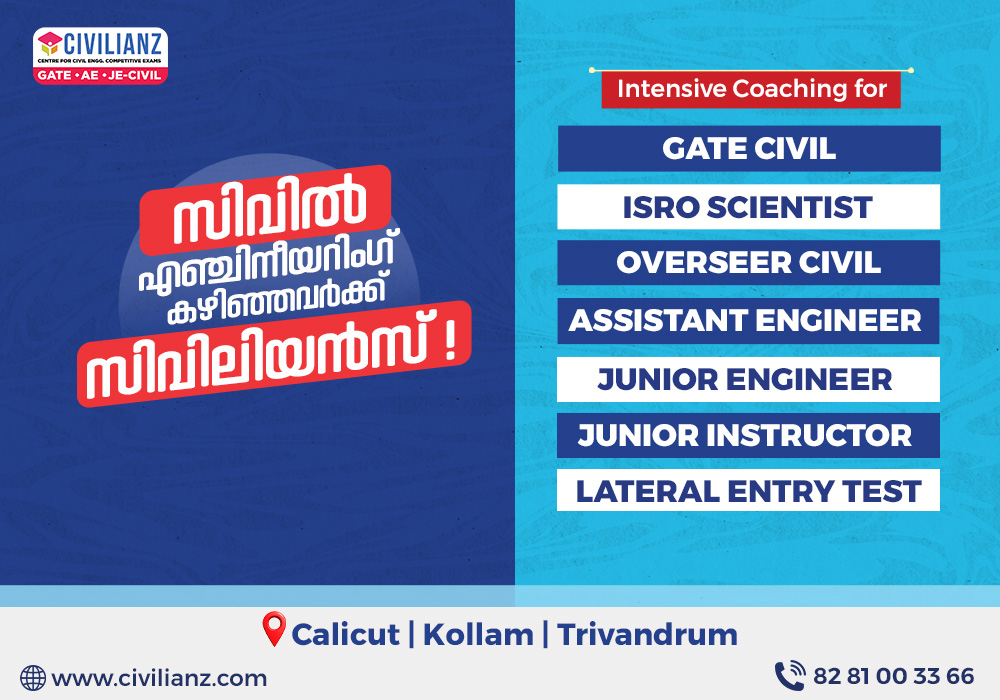Civilianz is the leading and most trusted civil engineering competitive exam coaching institute in Kerala. Known for its unmatched results and uncompromised quality of coaching, Civilianz is widely recognized as the best civil engineering PSC coaching centre in Kerala. All programs at Civilianz are result-oriented and strategically designed to help aspirants secure top ranks in various civil engineering competitive examinations. Civilianz offers comprehensive and structured coaching for a wide range of exams including GATE Civil Engineering, Assistant Engineer (AE) Civil, Assistant Professor Civil, Polytechnic Lecturer, Junior Engineer (JE Civil), Overseer, Tracer, and other state and central government recruitment exams. Each program is carefully crafted based on the latest syllabus, exam patterns, and previous year question trends, ensuring that students are always well-prepared and confident to face competitive exams. Established in 2012, Civilianz has successfully guided more than 10000+ civil engineering aspirants toward achieving their career goals. Today, our students are serving in prestigious government departments such as Kerala PWD, LSGD (Local Self Government Department), Irrigation Department, Kerala Water Authority (KWA), Technical Education Department, Harbour Engineering Department, and more. This strong track record makes Civilianz a top choice for civil engineering coaching in Kerala. Civilianz has consistently produced outstanding results in Assistant Engineer and Overseer – Civil examinations, securing top ranks including 65 First Ranks and a significant share of candidates in the main rank lists. Our teaching methodology focuses on building strong fundamentals and advancing towards complex problem-solving techniques, fully aligned with the latest AE, Overseer, GATE Civil, SSC JE, and RRB JE exam standards. Our expert faculty members deliver in-depth, exam-oriented conceptual learning, helping students understand subjects from basic to advanced levels. The coaching is supported by high-quality study materials, regular assessments, mock tests, and detailed performance analysis to continuously improve accuracy, speed, and exam confidence. Within a short span of time, Civilianz has earned a reputation as the best GATE coaching centre in Trivandrum, attracting aspirants from across Kerala. We provide both offline and online coaching programs for AE Civil, GATE Civil, and Overseer Civil exams, ensuring flexible and accessible learning for all students. Civilianz has also made a remarkable impact in national-level exams such as RRB Junior Engineer (RRB JE), where a majority of selected candidates from Kerala in previous recruitments were Civilianz students. This reflects our commitment to excellence and our ability to deliver consistent results across multiple competitive platforms.
