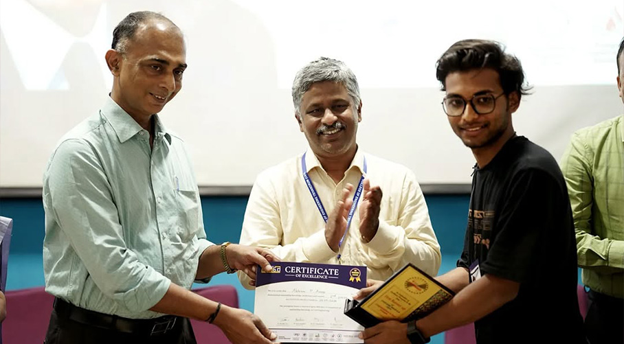 Cash prize presented by Prof. Prasad Krishna (Director, NIT Calicut) and Sri. Abga R (Organizing Secretary- South India, Vijnana Bharathi)
